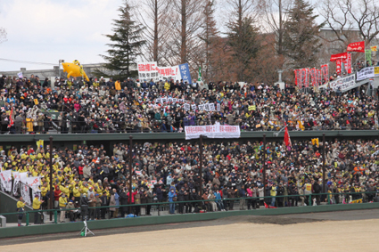 東日本大震災と東京電力・福島第一原発事故から一年目の、3月11日、郡山市・開成山球場で「原発いらない! 3・11福島県民大集会」が開催された。福島県内各地から、そして北海道から沖縄まで全国から、1万6000名を超える労働者・農漁民・学生・市民が、原発再稼働に突きすすむ野田政権への怒りに燃えて結集した。