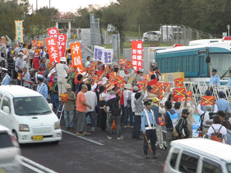 ![]() 10月2日、在沖米軍司令部・石平ゲート前で抗議闘争 |
