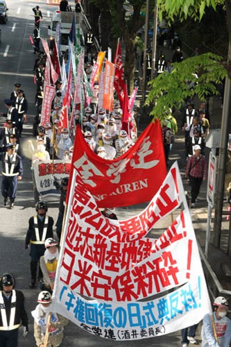 ◆憲法改悪阻止! 安保粉砕! ◆辺野古新基地建設阻止! ◆閣僚による靖国参拝弾劾! ◆中国政府の戦争挑発反対! ◆原発再稼働阻止! 原発輸出反対! ◆労働者・学生を貧困地獄に突き落とすアベノミクス反対! ◆社会保障制度改悪阻止! 消費税増税阻止! ◆「反安保」を放棄した日共系平和運動をのりこえたたかおう! |