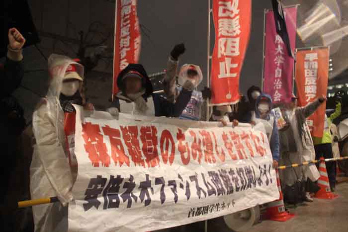 3月16日、首都圏のたたかう学生たちは、国会前において、「森友疑獄のもみ消しを許すな!」「安倍ネオ・ファシズム政権打倒!」の怒りの声をとどろかせた。