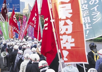 | 10月27日、全学連と反戦青年委員会のたたかう労働者・学生たちは、「憲法改悪阻止」「日米核安保粉砕」「日本国軍の中東派遣阻止」を掲げ、首都・東京においてデモンストレーションに決起した。北海道から沖縄まで、全国で決起したたたかう労働者・学生と固く連帯して、改憲阻止・反戦反安保の炎を燃えあがらせたのだ。 安倍政権・自民党は、今臨時国会になんとしても改憲条文案を提出するために、10月31日にも憲法審査会を開始することをもくろんでいた。この政権は、米軍が対イランの軍事的威圧を続けている中東への派兵をも発表した。さらには、沖縄、日本全土への中距離核ミサイル配備をねらうアメリカ・トランプ政権の策動にも、全面的にこたえようとしている。 この安倍政権が一挙に振り下ろす改憲・中東派兵・核安保強化の攻撃を打ち砕くという闘志を燃やし、労学は闘いに決起した。改憲阻止や安保反対の大衆的闘いの組織化を全く放棄する日共中央を弾劾しつつ、全学連と反戦青年委員会のたたかう労働者・学生は、首都中枢に、米日両権力者にたいする反撃の烽火をぶちあげたのである。 |